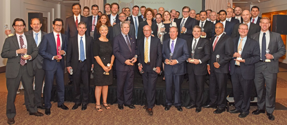Miller Canfield CEO Michael McGee (4th from right, front row) and Darryl Davidson (2nd from right, front row) accepted the award. Photo credit: Global M&A Network
