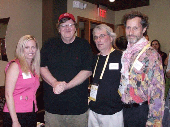 Pictured (L-R) at the Miller Canfield and Michigan Movie Magazine Afternoon Intermission Reception are: Lisa Pick, head of Miller Canfield's film and entertainment business initiative; Oscar-winning filmmaker Michael Moore; Jim Burnstein, screenwriting coordinator, Screen Arts & Cultures, University of Michigan; and Robert Rayher, production senior lecturer, Screen Arts & Cultures, University of Michigan.
