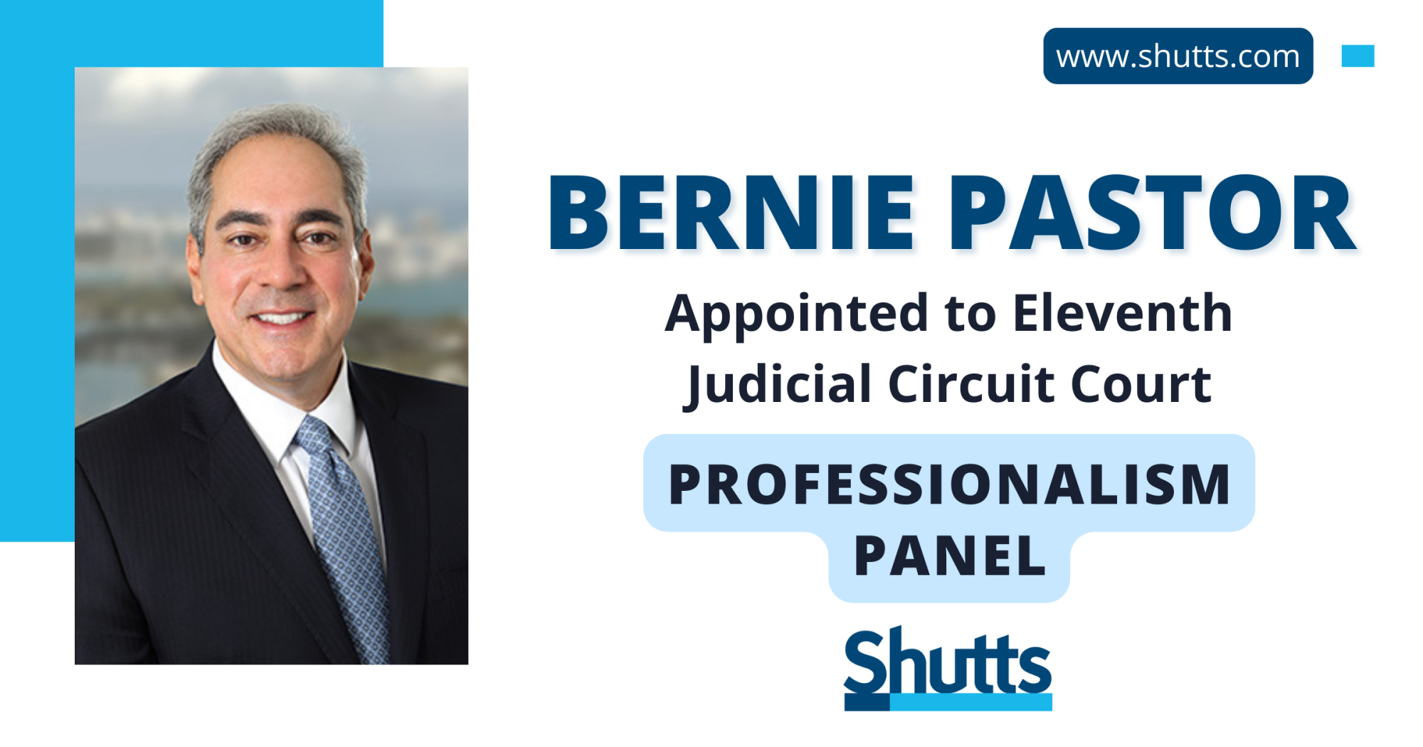 Shutts & Bowen LLP Miami partner Bernard “Bernie” Pastor was recently appointed by Chief Judge Ariana Fajardo Orshan to serve as a member of the Eleventh Judicial Circuit of Florida Professionalism Panel.