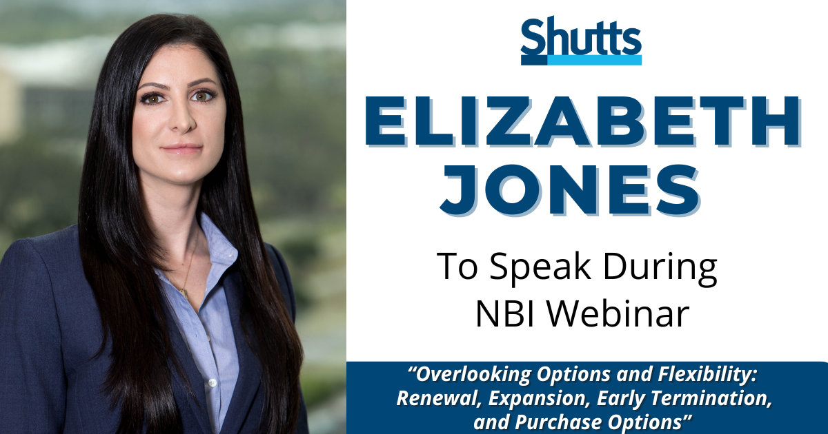 Shutts & Bowen LLP West Palm Beach partner Elizabeth M. Jones, a member of the firm’s Real Estate Practice Group and its commercial leasing team, will be a featured speaker in an upcoming National Business Institute (NBI) webinar course focused on commercial lease drafting, review, and negotiation on February 5, 2026.